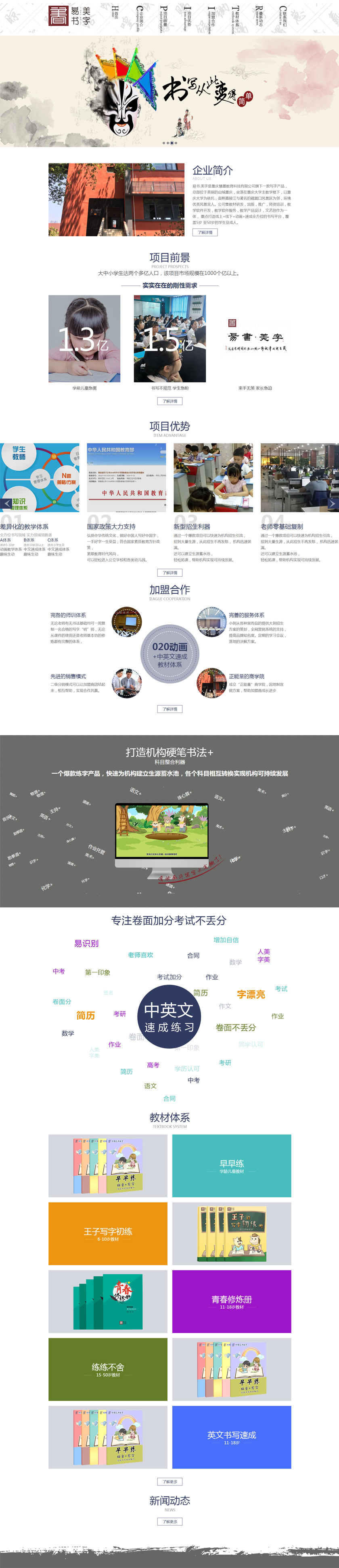 Project Description 易书.美字练字是重庆慧墨教育科技有限公司旗下一款写字产品,总部位于美丽的山城重庆,坐落 在重庆大学主教学楼下,以重庆大学为依托,面朝嘉陵江与著名的磁器口风景区为邻,环境优美 风景宜人。公司集教材研发,出版,推广,师资培训,教学软件开发,教学软件服务,教学产品 设计,文艺创作为一体,重点打造线上+线下+动画+速成全方位的书写平台,覆盖5岁至50岁的学 ... Official website address 宜春# I want to share